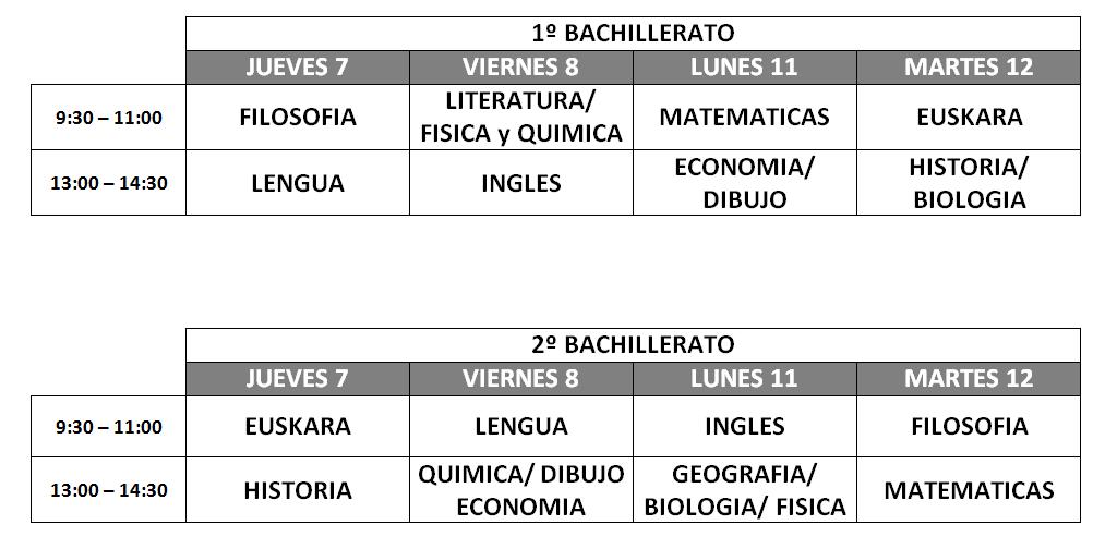 Inicio Tablón de anuncios Exámenes de Bachillerato - 2ª Evaluación