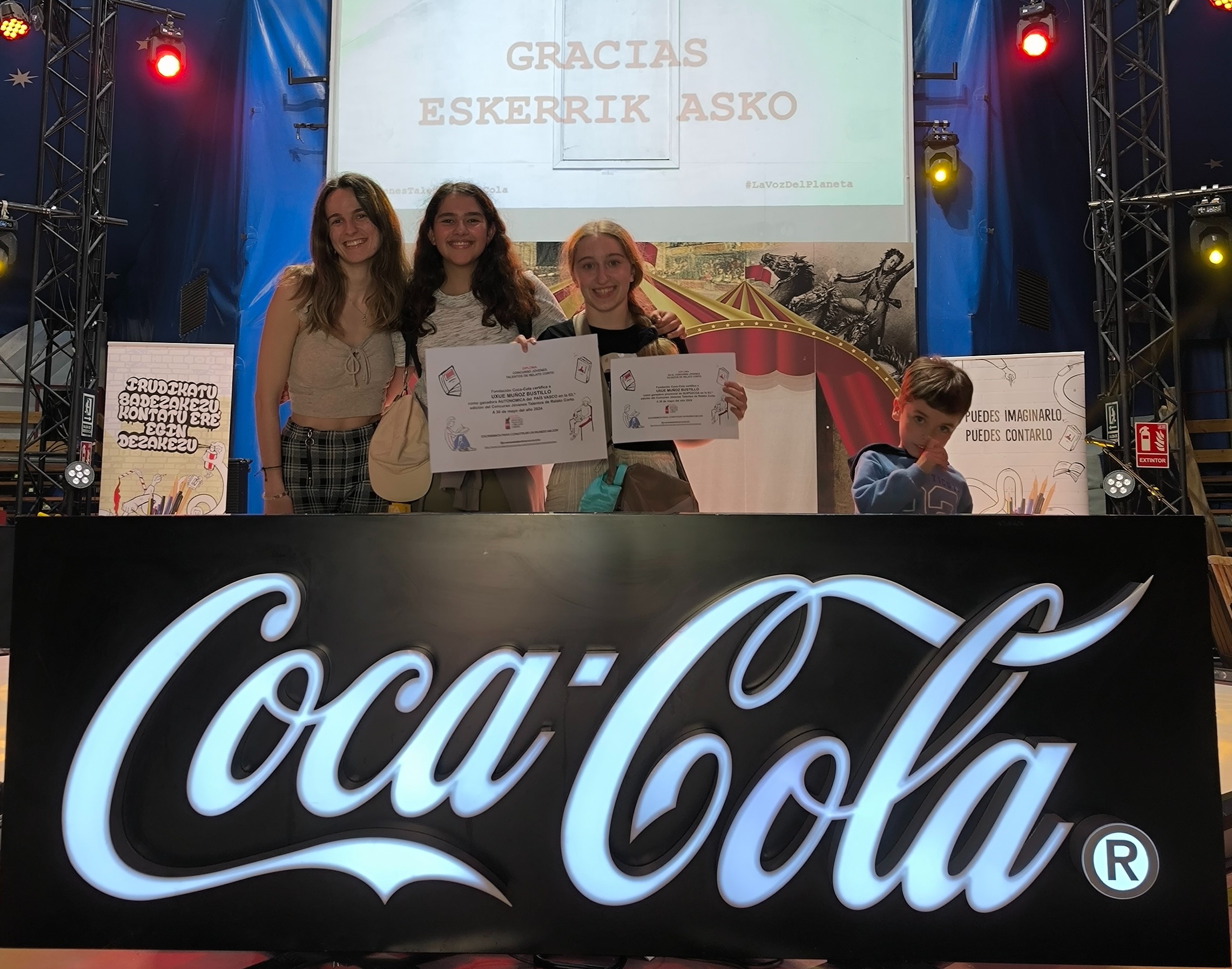 Tras la celebración de la gala de “Jóvenes Talentos de Relatos Cortos” de Coca-Cola la alumna de la Asunción ikastetxea Uxue Muñoz Bustillo se alzó con la victoria en el certamen autonómico teniendo la oportunidad de asistir a Madrid entre 19-21 de junio a un taller de lectura y escritura y a una última gala.