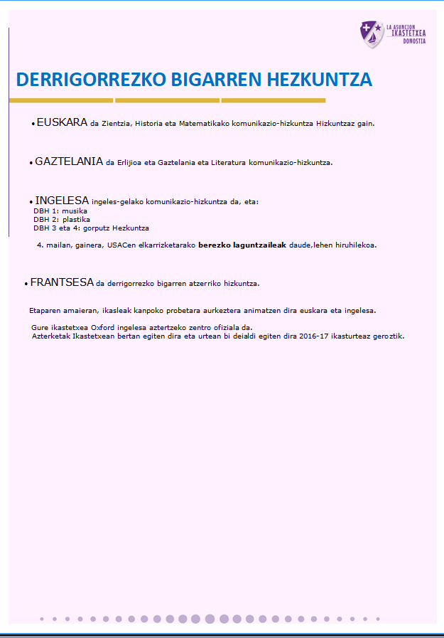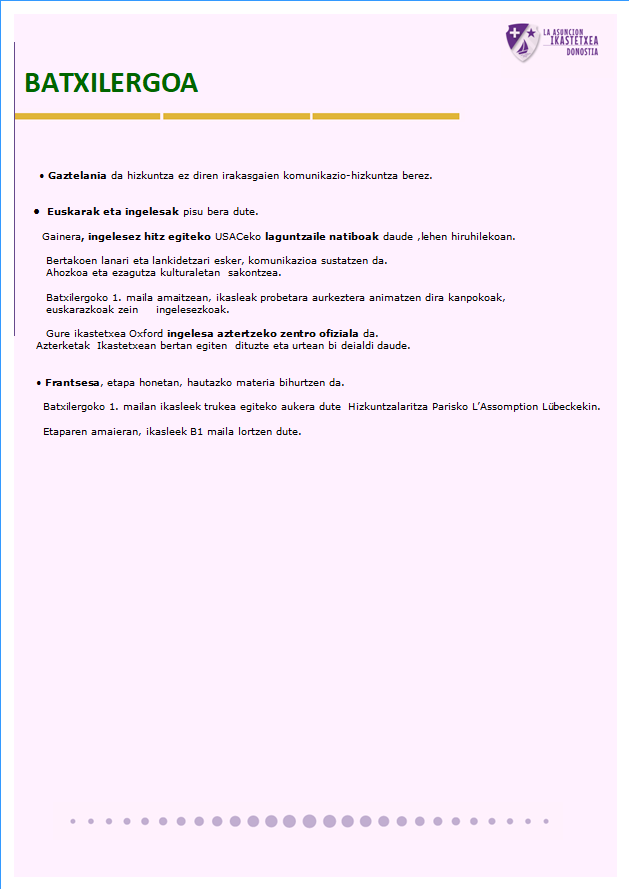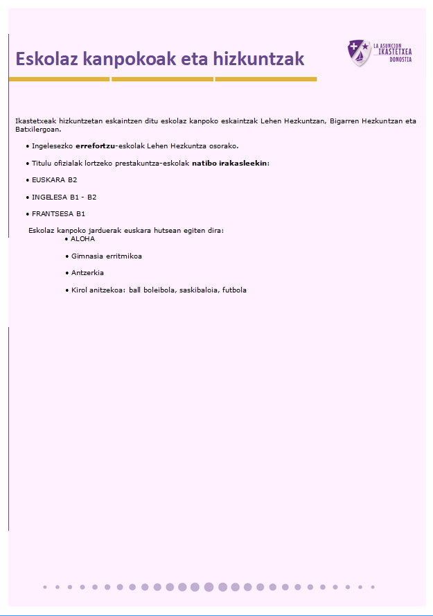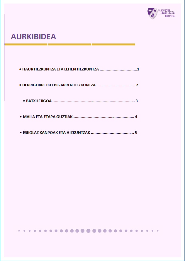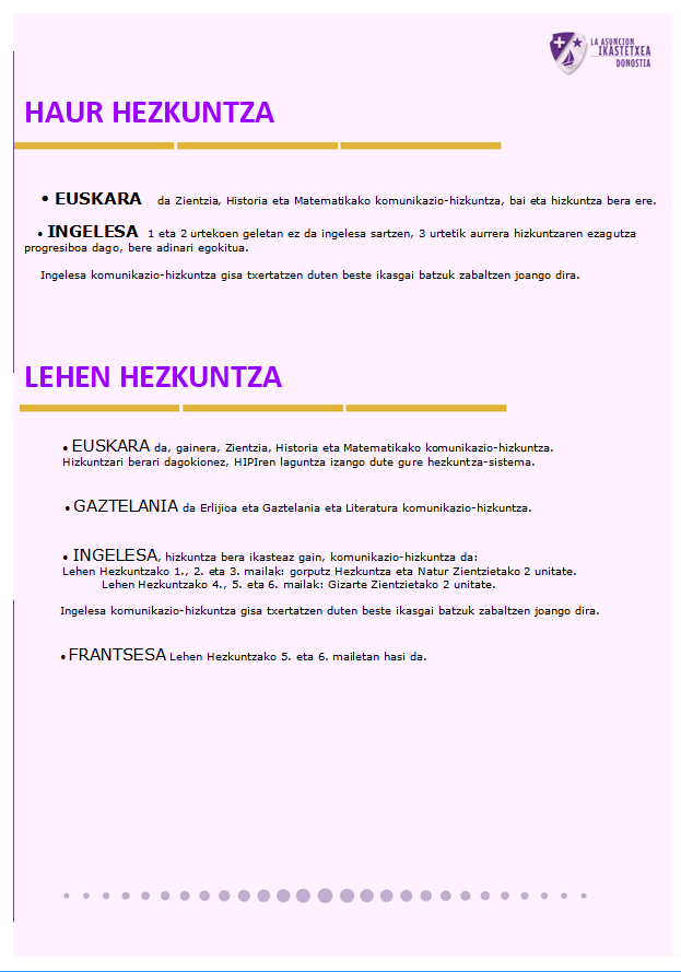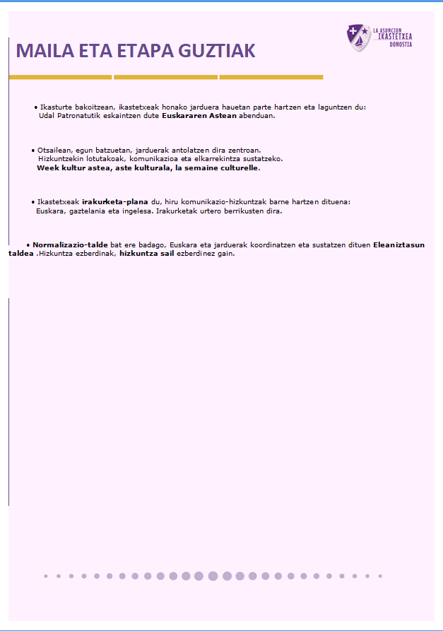Etxea Hezkuntza mailak IKASTETXEAREN HIZKUNTZ PROIEKTUA
