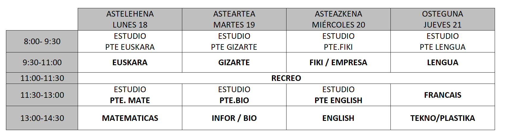 Etxea Iragarki-taula Ez Ohiko azterketak DBH