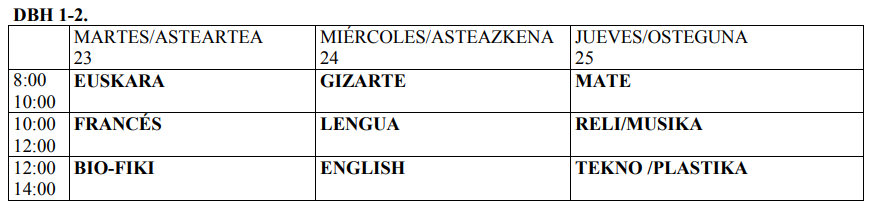 Etxea Iragarki-taula 1. eta 2. DBH - EZ OHIKO PROBAK 2020