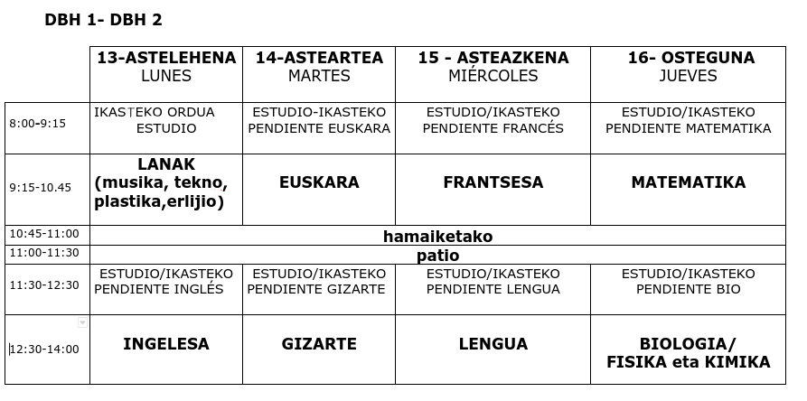 Etxea Iragarki-taula Azterketa finalak: 1. eta 2. DBH